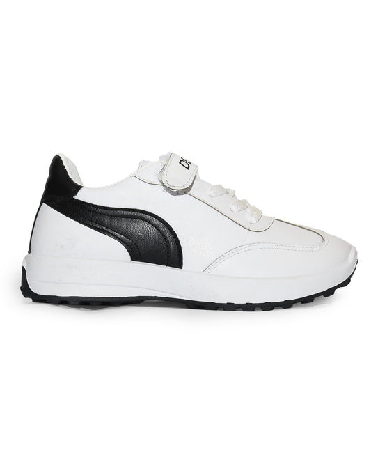 625 - Side Printed Lace-Up White Flat Sneakers For Women