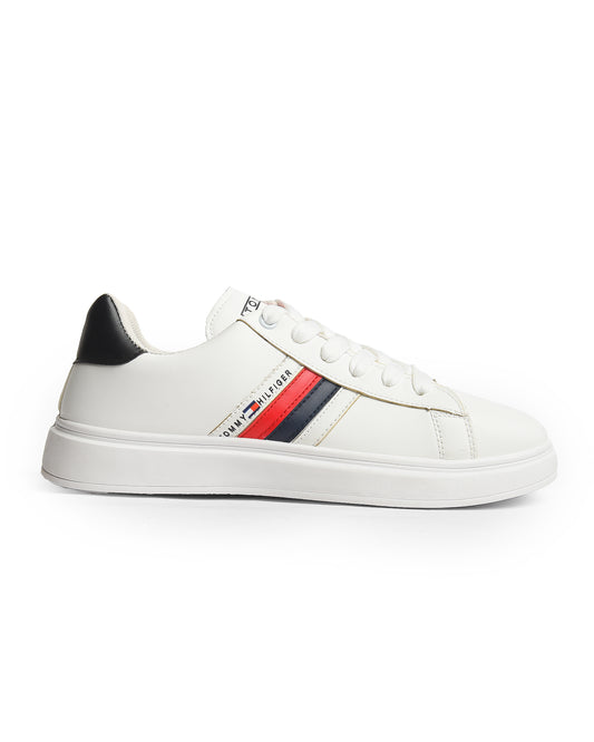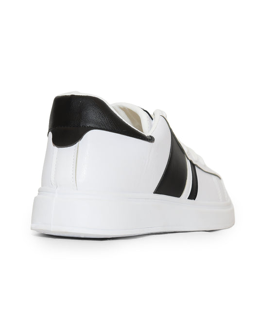 حذاء سنيكرز فلات جلد لون جانبي للرجال
