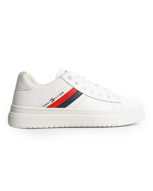 حذاء سنيكرز فلات جلد لون جانبي للرجال