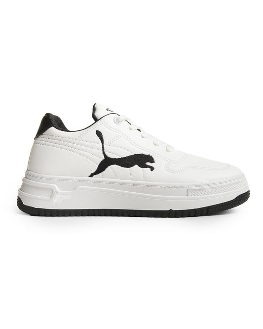 656 - Side Printed Lace-Up White Flat Sneakers For Women